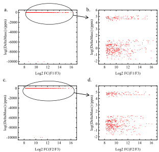 图 2 表达差异 (Log2FC) 和鉴定可信度 (ppm) 二维散点图