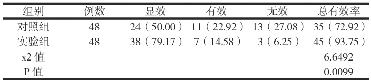实验组的临床总有效率明显高于对照组的( P<0.05 )。见表1。