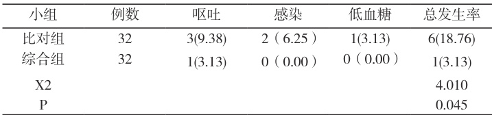 综合组护理安全性高于比对组, P<0.05 。具体见表 1
