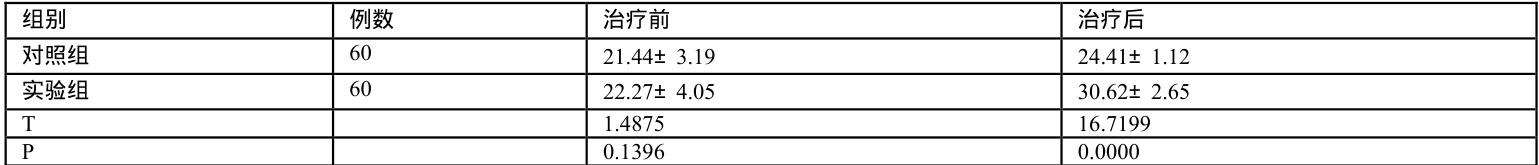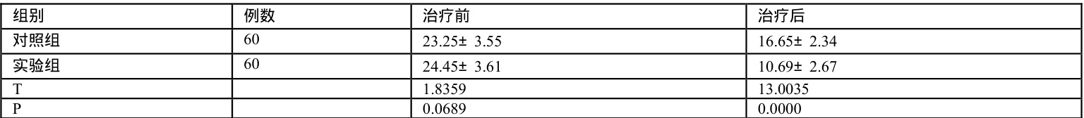 治疗前 MMSE 评分对比无差异( P>0.05 ),治疗后实验组 MMSE 评分较对照组明显更低,说明有统计学意义