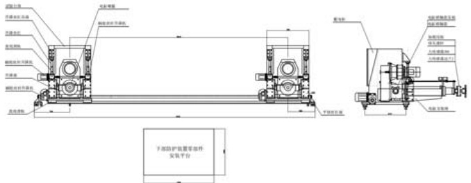 该机构布置在台体底部,支撑及固定台体。可带动台体整体横向水平移动,实现加载位置的水平横向调整。