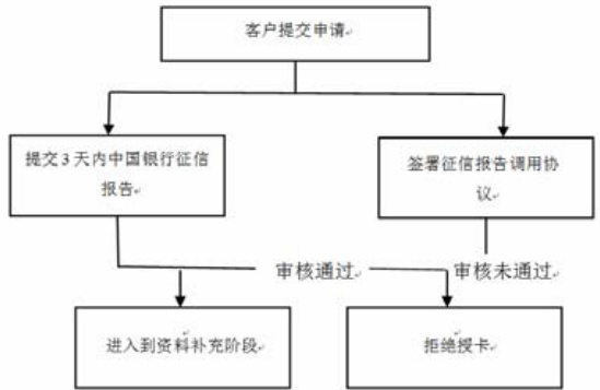 从图2-2 对*支行信用卡风险管理流程图的整理中可以分析得到,该行目前对于客户信用情况的核验,仅需要客户提供相应的征信报告以及征信报告调用允许书即可。