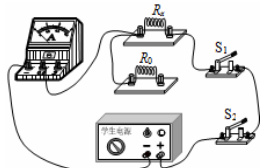 根据以上分析, R0 与 Rx 并联,但由于开关 S1 与 R0 串联在一起, S2 应安排在干路上,因此 R0 的右端应接在开关 S1 、 S2 之间,添加的这根导线如图所示: