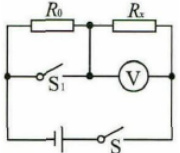 ,应知道加在它两端的电压以及通过的它的电流.加在它两端的电压可用电压表直接测出;由于没有电流表,通过它的电流无法直接测量,根据串联电路的电流特点----各处电流相等,故可把未知电阻 Rx 与定值电阻 R0 串联,用电压表测出定值电阻 R0 两端电压,算出通过定值电阻 Rx 的电流,此即串联时通过 R0 的电流.