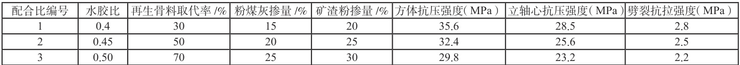 对不同配合比的新型再生生态混凝土进行力学性能测试,结果如表1 所示: