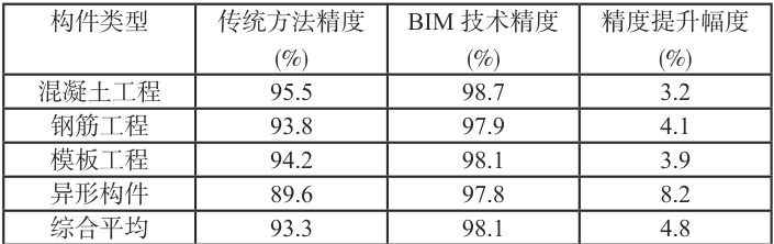表1 BIM 技术与传统方法工程量计算精度对比