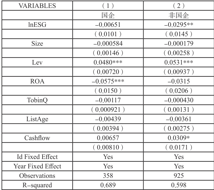 2.ESG 表现与产权性质之间的关系