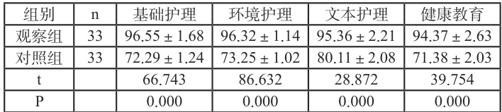 2.1 两组护理质量评分比较