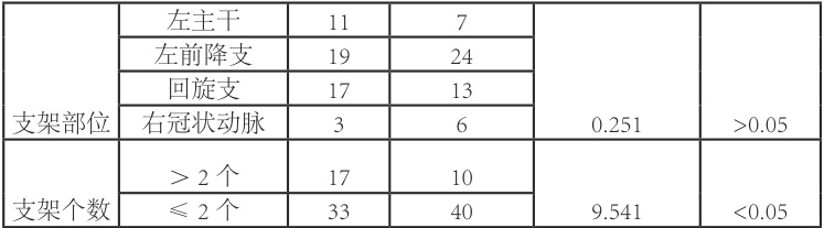 综上所述,临床中有多种因素都会对冠心病患者支架置入术后发生 ISR造成影响,要和患者实际情况结合开展预防和治疗。