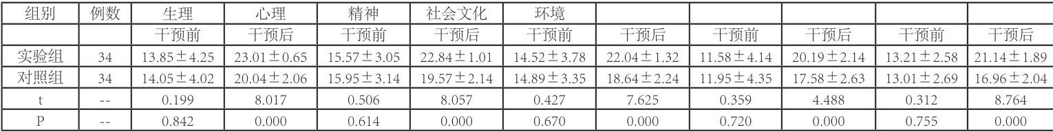 干预前,没有显著差异,干预后,实验组舒适度高于对照组, P<0.05e 。