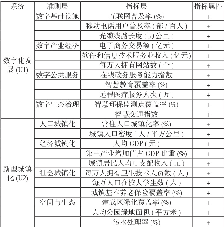 为科学测度市数字化与新型城镇化发展水平,本文遵循科学性、系统性和可操作性原则,构建了两个综合评价指标体系(见表1).