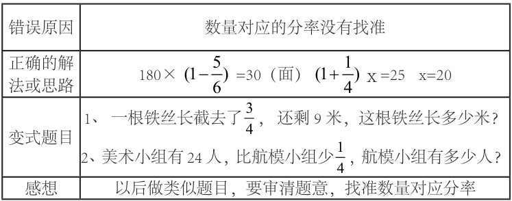 我在教学六年级“圆锥体积”“比例”和“百分数”等单元之后,要求学生对各个单元的错例进行回顾复习,并引导学生找出自己在学习过程当中存在的共性问题。孩子们对各个单元错例进行对比分析之后,在“错例卡”上做了如下的整理: