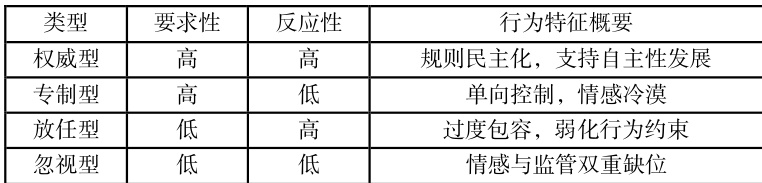 尽管 Baumrind 模型被广泛用于解释家庭教育的影响路径,但其在非西方语境中的适用性仍存争议。例如,集体主义文化中的专制型教育可能因“孝道伦理”的调节作用而弱化负面效应(Chao,1994)。然而,跨文化元分析证实,权威型教育在促进心理适应方面的优势具有普适性,而忽视型教育的危害性在不同社会结构中均显著存在(Pinquart&Kauser,2018)。因此,本研究在操作化定义中保留原始分类框架,但在数据分析阶段纳入文化资本(如家庭价值观)的调节变量。