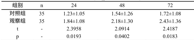 观察组优于对照组( P<0.05 )。见表 1