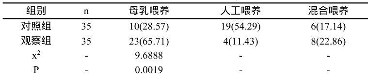 表3 母乳喂养情况对比 (n,% )