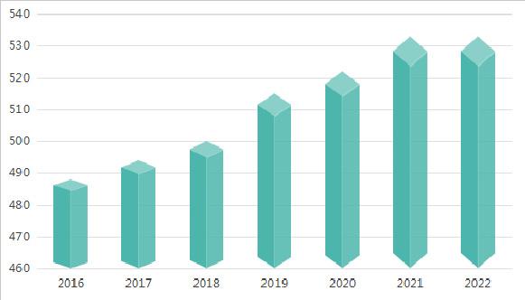 成本前控是造价管理中非常重要的组成部分,可以借助有效的市场调研,推动项目资源配置的合理化,减少不必要的成本支出。伴随着国家科研投入的增加以及利好政策的落实,实验室建设行业的市场规模从2017年的202亿元增长到了2021年的351.2亿元,期间年平均复合增长率为 14.8‰ 。从市场结构分析,实验室建设中,实验室系统整体解决方案占据了市场份额的 73.1% ,剩余的 26.9% 为实验室装备。截至 2022 年底,处于正常运行状态的国家重点实验室数量达到了 533 个,被纳入新序列管理的国家工程研究中心数量为191 个。依照国家统计局公布的数据,2016—2022 年,中国国家重点实验室的数量如图1 所示。