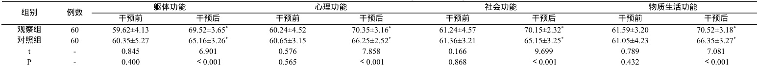 干预前,干预后,用生活质量综合评定问卷-74 评价,总分 0~100 分,分值高则生活质量高。1.5 统计学处理