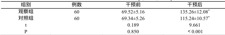 干预前,两组负性情绪评分无差异性,干预后,观察组患者负性情绪评分低于对照组( P<0.05) 见表 4。