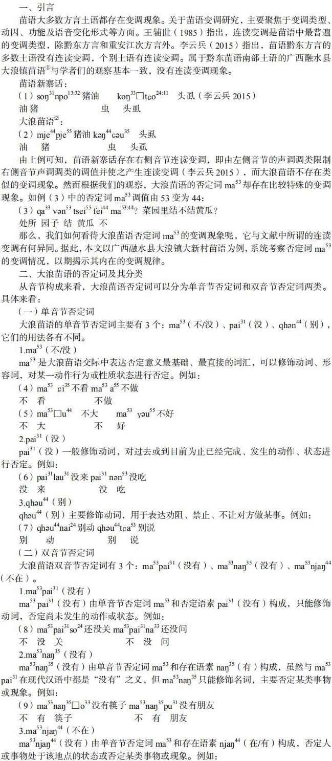 [4] 牟飘飘.安顺苗语的否定词及其句法特征[J].民族语文,2023(01).