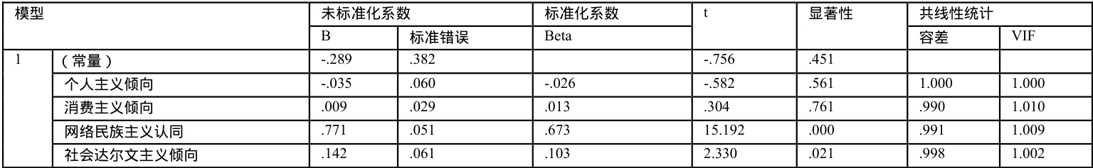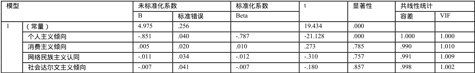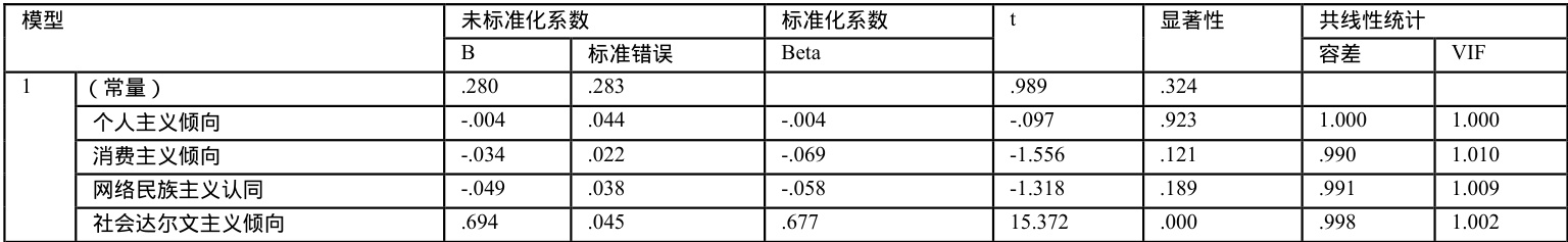 多元回归分析目的是检验各社会思潮变量对行为变量的预测作用。