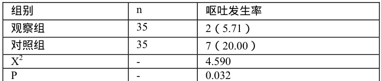 表1 组间新生儿呕吐发生率对比[n (% )]