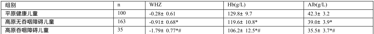综上所述,高海拔环境显著增加儿童吞咽障碍风险,并与营养不良形成强化性恶性循环。