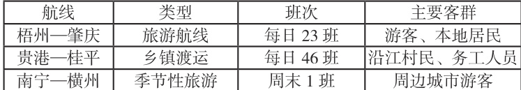 旅游航线(占 30% ):如梧州—肇庆游船。