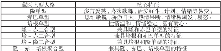 藏医七型人格的核心特征可概括为表1: