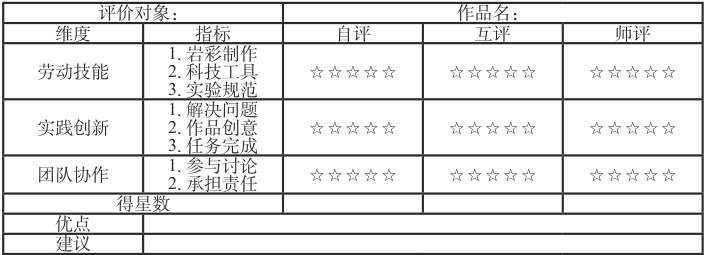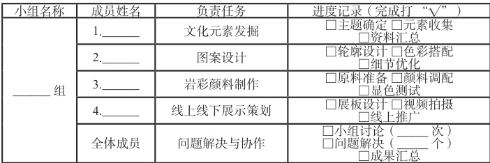 采用多元展示加立体评价的方式,让学生充分展现成果、获得反馈,成果展示环节以学校的“岩彩艺术廊”和数字化平台为基础构建了双展示渠道,即线下布置展板,展示环保岩彩颜料、AR 岩彩书签等学生的实体作品,并由学生现场表演制作流程,阐述设计理念;线上通过学校数字化平台进行作品视频的上传和文档的设计,并开放线上投票和留等功能以扩大成果的影响力,在评价环节,构建学生自评加小组互评加教师评价的立体体系:学生自评聚焦“个人对项目贡献,技能提高点”;小组互评围绕“团队协作效率,工作创新性”展开,助力学生在反思中提升。