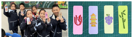 学生制作的岩彩科创作品既有艺术性又有科技感,比如融合 AR 技术制作的岩彩书签、环保岩彩装饰画等等。在学校举办的岩彩劳动文化节展览中,有多件作品被评为优秀。此外,还有2 件作品在区级青少年科技创意大赛中获得了奖项,得到了教师、学生和校外专家的高度认可,这也成为了课程效果的直观展示。