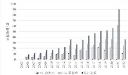 通过对气味景观研究领域文献的统计,得到 2005-2022 年国内外气味景观研究文献数量年度分布图(图1)。在文献发文量上,以外文文献为主,国内文献发文量较小。