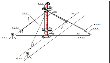 钢柱底端与基础初始接触后,必须立即停止下放。此时,需系统复核钢柱周边轴线与基础十字中心线的对齐情况,同时确认底部钢垫板的安装位置与数量是否符合设计规范要求。若发现任何偏差,应由三名技术人员协同进行调整:其中一人负责移动钢柱,另一人提供辅助支撑,第三人进行精度检测。待钢柱定位偏差控制在3mm范围内后,方可继续进行下放操作直至完全就位。随后,应在四个方向分别拉紧稳定缆绳,并紧固地脚锁紧螺母。在特殊场地条件下无法设置缆风绳时,可采取刚性支撑系统进行结构固定与校正,如下图1 :