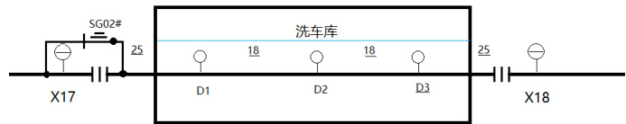 某洗车机厂家该型洗车机在工作时要求洗车库内“接触网不带电,库内为无电区”。接触网设计方案是在洗车状态下接触网洗车库外手隔 (SG02#) 应为合闸,实现带电洗车;在检修状态下,接触网洗车库外手隔 (SG02#) 应为分闸接地,以确保检修安全。