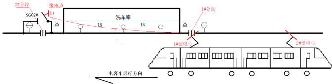 (1)在工程建设的设计阶段设计要充分理解厂家洗车机的工作原理和技术要求,设计单位方案要充分考虑电客车前后弓与分段绝缘器间距逻辑关系,且保证接触网检修作业期间,区段单独停电接地的安全保障。
