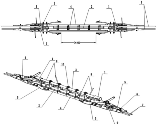 6 接触线线夹 7 接触线 8 消弧角 9 连接线夹 10 抱箍式支架