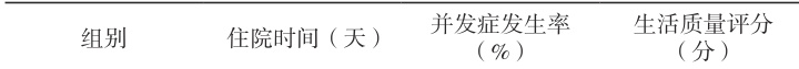 表2 两组患者住院时间、并发症发生率及生活质量评分比较