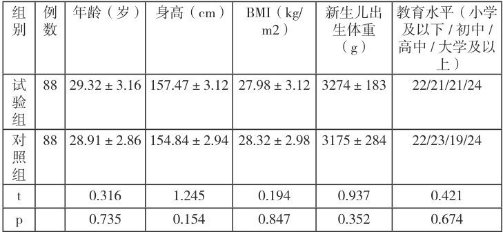 比较两组产妇年龄、身高、新生儿出生体重、分娩方式、BMI 及教育水平等一般资料,无统计学差异(p>0.05)) ),具有可比性。两组产妇一般资料统计见表1。