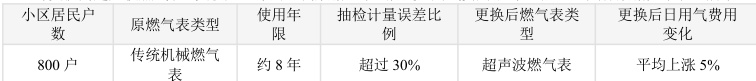 燃气公司详细分析了该情况,排除了燃气价格调整和居民用气习惯大幅改变等因素后,进一步检测发现,原有传统机械燃气表在长期使用后出现 导致居民实际用气量较大但计量偏少。更换为超声波燃气表后,居民的实际用气 应上涨。通过这个案例可以看出,传统机械燃气表在长期使用后计量准确性明显降低,而超声波燃气表在计量准确性方面具有明显优势。