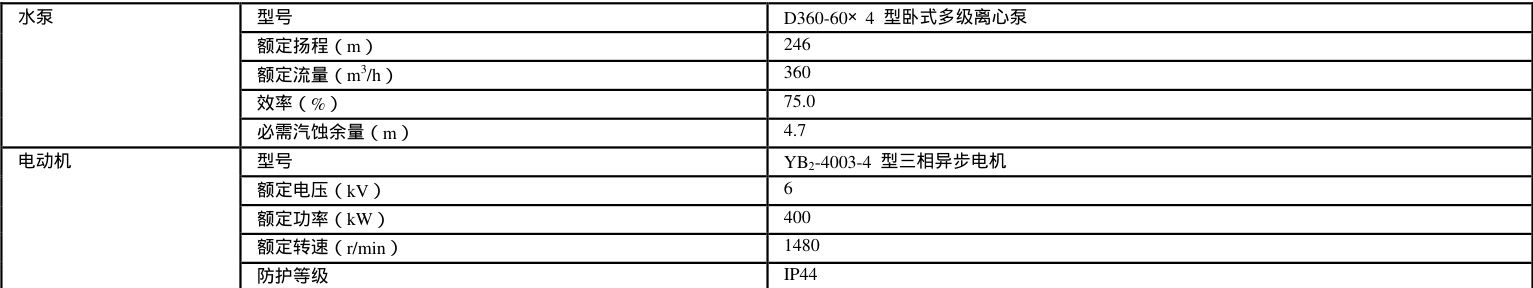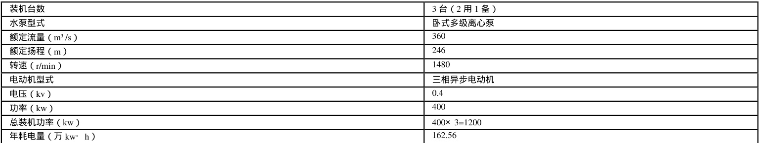 泵站装机3 台,其中2 台为工作泵,1 台为备用泵。泵站及机组相关参数见表3-表 5