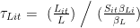 其中 τLit 表示 i 地区第 t 年的劳动力价格的相对扭曲系数, Li 表示 地区第 年的劳动力就业人数, 为全国总劳动力投入, sit 为 i 地区第 年占全国总 GDP 的比重。 βLi 为