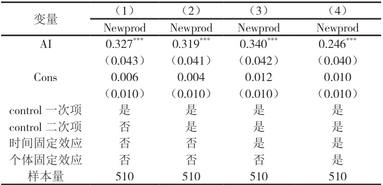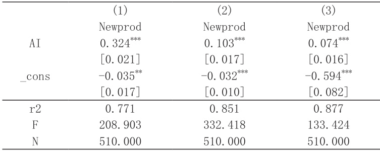 为探讨假设 1,即人工智能的发展水平是否直接影响了新质生产力的提升。本文基于上文构建的模型对数据进行基准回归,具体如表 3 所示。