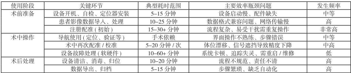 表1 神经导航设备使用各环节典型耗时与问题