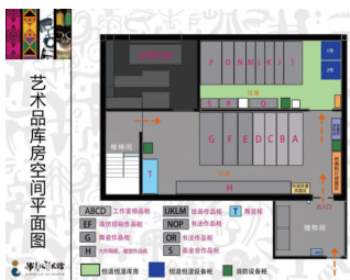 f)制作空间平面图:根据库房实际保 术品的定位进行制作,张贴在库房入口右侧。
