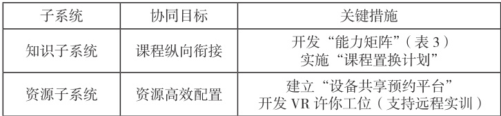 在职业教育领域,中高职贯通教育可视为一个由知识子系统(课程体系)、资源子系统(硬件与数据)、组织子系统(管理制度)构成的复杂系统。以职业能力标准作为其协同演化的核心序参量,牵引知识、资源、组织三子系统协同演化:
