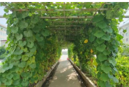 受到现代化水泥厂生产特点的影响,厂区环境不仅会影响到厂内职工的生活条件,同时,也会对职工的心理观念产生一定的影响。而在在优化水泥厂厂区环境时,考虑到绿化带是水泥厂整体环境的重要组成部分,设计人员即可结合厂区环境的改进要求与景观植物的特点对水泥厂厂区环境进行全面优化。首先,考虑到水泥厂恶劣的生产环境会导致厂区内景观植物需要定期开展养护工作,因此,在筛选景观植物时,设计者要先注重植物的经济性特征,尽量对植物的水分消耗情况以及肥料消耗情况进行对比。其次,为实现植物存活率的提高,在优化水泥厂环境时,设计人员要优先运用本土植物。以此借助其对水泥厂环境的较强适应性,在优化水泥厂环境的同时,使水泥厂整体环境体现出地域特色。此外,考虑到水泥厂的生产工作会产生大量噪音以及包含二氧化硫、氮氧化物、重金属等有害成分的废弃物,因此,一方面,在开展环境绿化工作时,设计人员需要尽可能选择一些具有抗氮氧化物以及降噪性特征的植物,如枫香、水杉、梧桐、法桐、南美铁树等。另一方面,设计人员也可结合职工需求,运用各类植物搭建凉亭、文化长廊等基础休闲设施。以此在优化水泥厂厂区整体环境的同时,为工作人员提供基础的休闲娱乐场所。例如,下图 2 为某水泥厂在厂区内运用葫芦搭建的长廊。该长廊不仅可以发挥出遮阴功能,同时,繁茂的葫芦藤蔓以及形态各异的葫芦也可使职工在观看时由衷产生强烈幸福感。