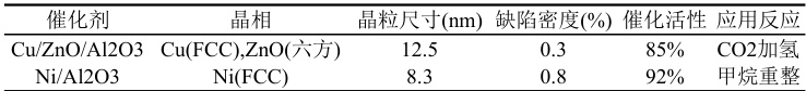 Ni 基催化剂在甲烷重整反应中表现出优异性能,其催化活性与其晶格缺陷密切相关。在某研究中,采用共沉淀法制备了 Ni/Al2O3 催化剂,并通过 XRD 分析其微观结构。衍射图谱显示,Ni 在 20=44.5 和 51.8。处出现(111)和(200)晶面的特征峰,晶粒尺寸约为 8.3nm 。此外,通过峰形分析发现,Ni(111)峰的半高宽较标准值偏大,表明存在晶格畸变。进一步的 Rietveld 精修结果显示,Ni 晶格中存在约 0.8% 的点缺陷,这些缺陷可能是 Ni 原子替换或空位缺陷。催化性能测试表明,缺陷密度较高的 Ni 催化剂在甲烷转化率上提高了约 10% ,说明微观缺陷对催化活性有正向贡献。表1 总结了上述催化剂的XRD 分析结果与性能数据。