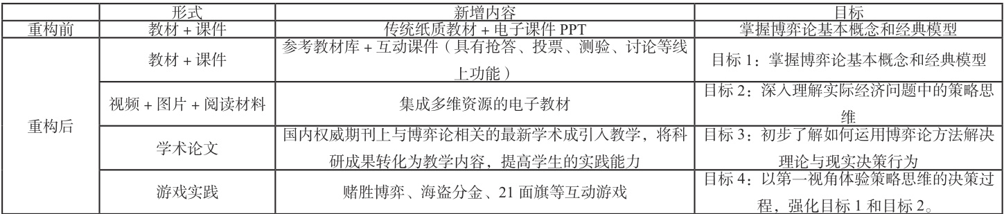 表1 重构前后科教融合博弈论课程内容形式比较