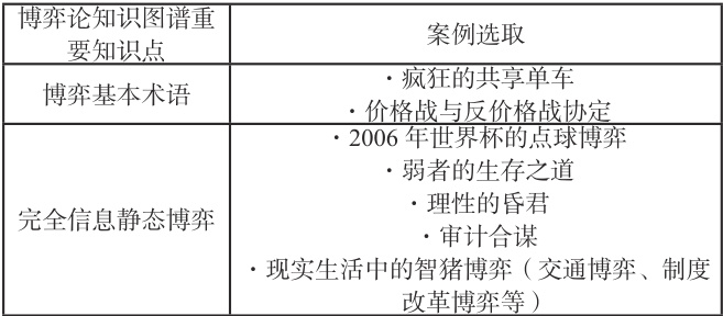 表2 博弈论课程案例分布