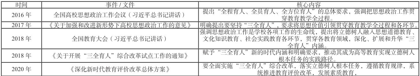 表1 三全育人概念发展脉络