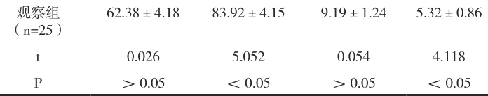 以本院 50 例患者为样本,对照组 25 例,性别:男 15 例,女 10 例;年龄60\~84( 73.24±1.10 )岁。观察组 25 例,性别:男14 例,女11 例;年龄61\~87( 73.40±1.05 )岁。两组患者具有可比性( P>0.05 )。